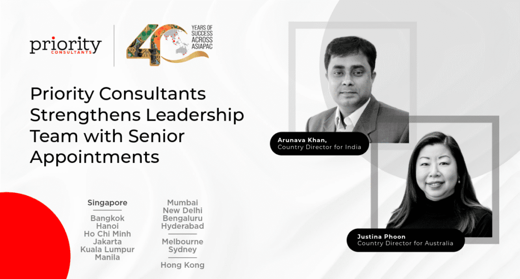 Notwithstanding the uncertain global geopolitical landscape, Priority Consultants continues to invest in expanding its Asia Pacific footprint and enhancing its capabilities to serve a growing portfolio of global and regional clients.