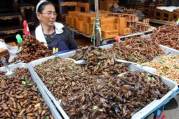 This in Bangkok, a city renowned for their more than “lively” culinary delights readily available on street corners – some of which include deep fried grubs, beetles, caterpillars, crickets (cicada), cockroaches and more.